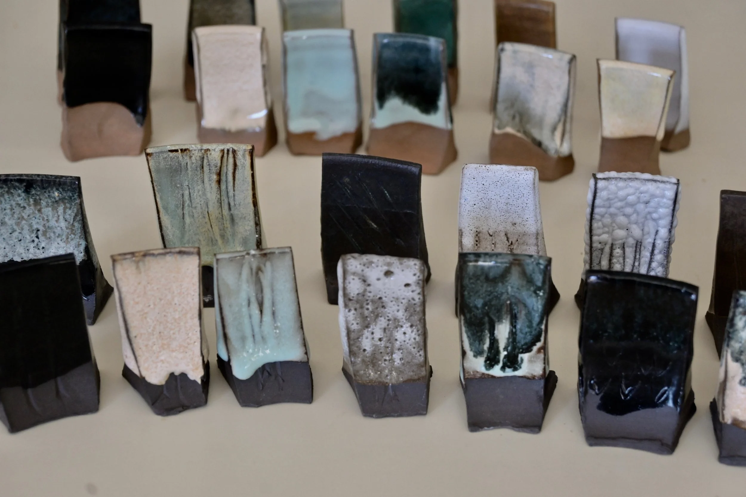 Testing Glazes on a Specked Cone 6 Clay body.
